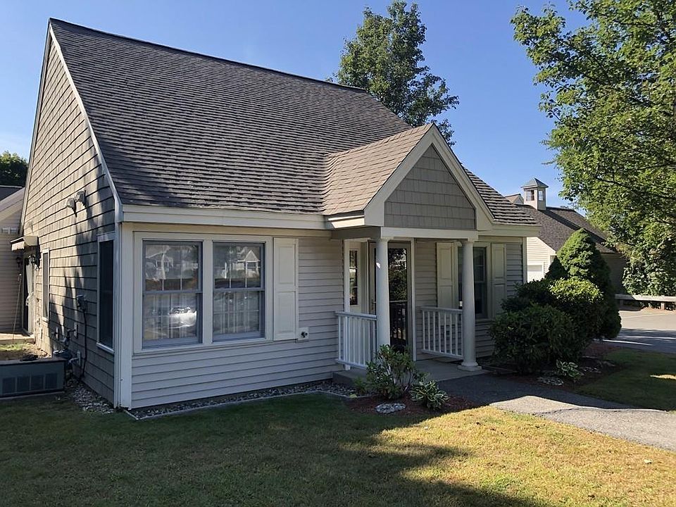 Come and view this adorable storybook cape style Danforth Village condo in over 55 complex in Billerica Center location. Feels like a single family home but no shoveling or mowing required. Updated less than 4 years ago with kitchen with newly painted cabinets, new dishwasher, 3 year old refrigerator, new quartz countertops, all new light fixtures both inside and out. Hardwood floors throughout. Completely painted throughout. Sunsetter awning with remote and wind sensor. New vanity and toilet in bathroom. Pull down stairs to huge attic storage. Clubhouse for gathering with fellow neighbors, family and friends. Storage closet in back of units. Great location near all center activities, churches, restaurants, library. Easy to show and ready for quick sale. Ample parking spaces.
