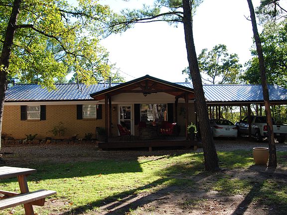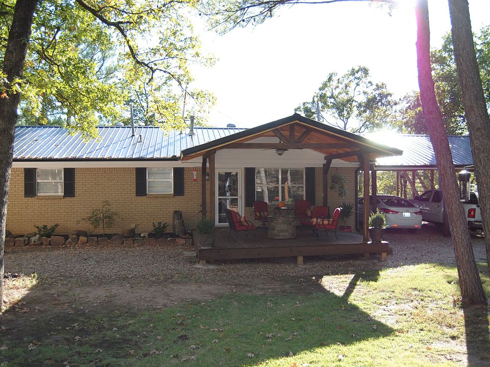 LAKE EUFAULA WATERFRONT HOME WITH PRIVATE BOAT DOCK 3 bedroom/2 bath/2 living areas (or one living area could be used for 3rd bedroom) Kitchen and dining are open to front living room. The entire house has been completely remodeled. With new crown molding and new base boards, new 2 inch white blinds, new carpet in the bedrooms and hall, new laminate flooring in the living areas kitchen and dining. Kitchen is open with new stainless steel appliances, granite countertops and tumble marble subway tile back splash. Both bathrooms have been remodeled. The entire house has been painted inside and out. New metal roof. This house is move in ready and fully furnished!!! Rural water, gas and electric. Central heat and air. (house cools quickly in the summer and warms nicely in the winter!) Single level home 1200sq/ft. In front there is a large front porch with ceiling fan. In back there is a large deck that runs the entire length of the house with a lower deck attached that leads down to the back yard. on the west side of the house there is a 2 car carport with a "sky deck" built above it. this is a great place for getting a great view all the way to the back of the cove. Beyond the decks in back is a slope towards the water and the boat dock. It is probably only about 50 yards to the water. The shop/garage in front is a 2 car, 24x36 built new last summer. There is a shop behind the house as well and it is 12x30. (both have electric) Private boat dock has been updated with encapsulated foam.
