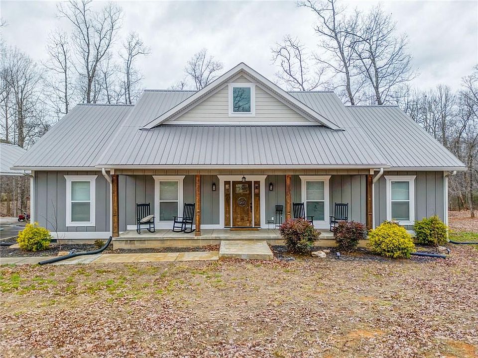 This true modern Farmhouse is AMAZING! Beautifully crafted and every attention to detail met. The kitchen boasts a gorgeous tiled backsplash, hearty butcher block countertops, exposed shelving and stainless steel appliances. Beautiful, warm hardwood-style floors, shiplap and coffered ceilings give an intimate and cozy feel as well. Enjoy a morning cup of coffee listening to nature on your rocking chair front porch. Have the whole family over for an evening of cooking out and eating on the huge covered back deck. You don't want to miss this one!
