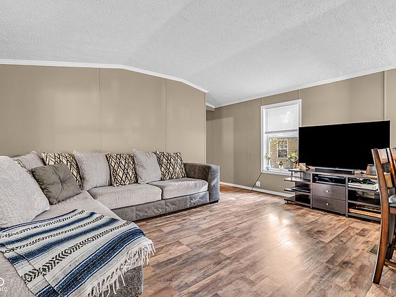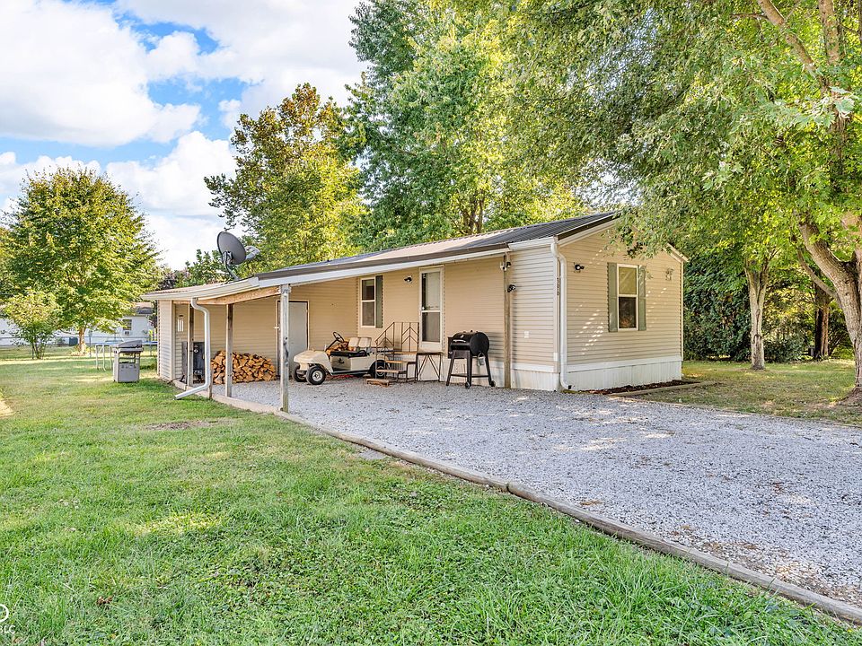 396 Winter Moon Ct. (formally Cool Evening Ct.), Cloverdale, IN 46120 - Located in the desirable Stardust Hills community, this beautifully maintained mobile home is MOVE-IN READY with all-new flooring, freshly painted walls, trim, and kitchen cabinets, plus a new XL sink. The overhead kitchen cabinets have been removed to create a true open-concept living area, making the home feel exceptionally spacious, while the kitchen still offers extra storage and a pantry. A convenient 7.5' x 5' laundry area is set up with a full-size washer and dryer. Outside features include a large carport with a 4' x 6' enclosed storage room and an additional 8' x 8' storage shed behind the home. Stardust Hills offers fantastic amenities including three stocked fishing ponds, a clubhouse, community pool, and playground. This well-kept, updated home is perfectly situated just minutes from Cloverdale conveniences and I-70 access. Seller is offering $3000 towards closing costs.