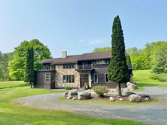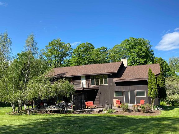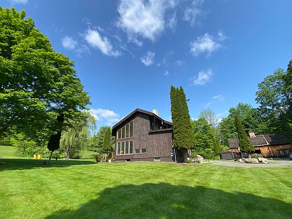 Lifestyle choices! This distinctive contemporary is situated on a country road with stately maple trees on the front lawn, an antique barn and four acres of tree lined meadows bordered on two sides by conserved land of the Retreat Farm. Designed and built by the owner as a single family residence it is currently arranged as a duplex, a home for her with rental income. Designed to be easily returned to its original 4 bedroom, 5 bathroom one family home it offers lifestyle choices for now and later. There is a separately deeded and surveyed two acre unimproved lot for future needs! The antique barn is ready for restoration. The Brattleboro Country Club golf course is across the road and shopping, schools and vibrant downtown Brattleboro are minutes away. Pictures show owner's residence on left side of house. On right side on the first level is a large open kitchen and dining area with glass doors to back deck, a living room and a 3/4 bath, upstairs are two bedrooms and a full bath. Laundry area and office in finished basement. Showings begin on Saturday May 27, 2023.