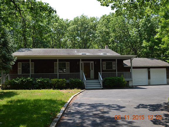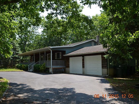 Gorgeous custom built ranch situated on a wooded lot of approximately .88 of an acre. This property has been freshly painted, inside and out, brand new custom wood flooring, spacious open floor plan, huge living room with a built in floor to ceiling wood burning fireplace with beautiful stone work, sky lights and sliding doors with a beautiful view of the wooded property leading to the rear deck. Both bathrooms have new ceramic tile flooring and new vanities. The property shows pride of ownership. 2 car attached garage as well as a detached garage on the property. This home is bright and airy with the many windows, skylights and sliding glass doors. There is so much potential for the future owners of this beautiful home.