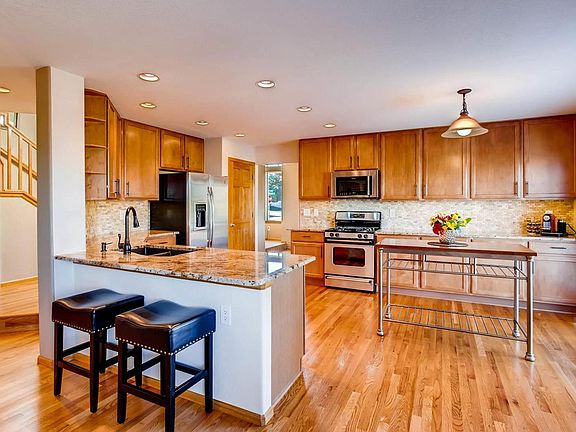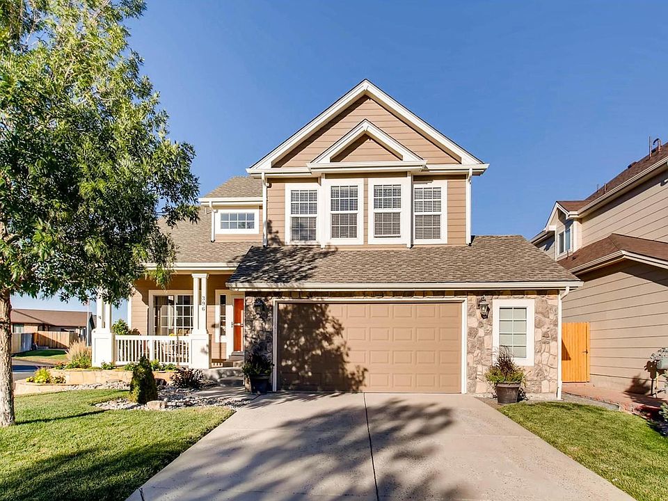 Welcome to this immaculate 2-story home situated on the corner of a private cul-de-sac. Inside, you will feel right at home with elegant and tasteful updates throughout. Fall in love with the spacious kitchen and its open floor plan. The updated kitchen features expansive slab granite countertops with a stone backsplash; maple cabinetry with pull out drawers; gas range; and stainless steel appliances including a microwave/convection oven combo. Master bedroom has en-suite 5 piece bathroom. Impressive professional landscaping and curb appeal. Enjoy the sunset on the covered front porch. The backyard has a privacy fence and very large deck for entertaining (30'Lx14'W). The finished basement is open and suited for a media room, exercise, entertaining, etc. Pool table flooring and lighting already installed. Mitchell Gulch Park and trails just steps from your front door. Buyer to verify all information which is deemed reliable but not guaranteed. Listing agent is related to sellers.