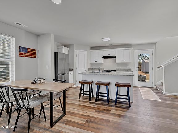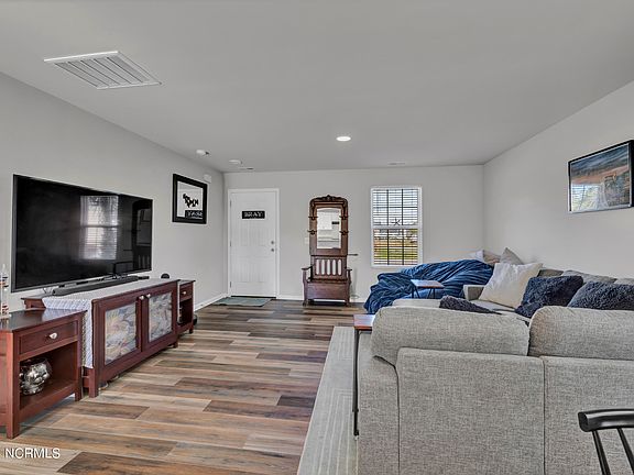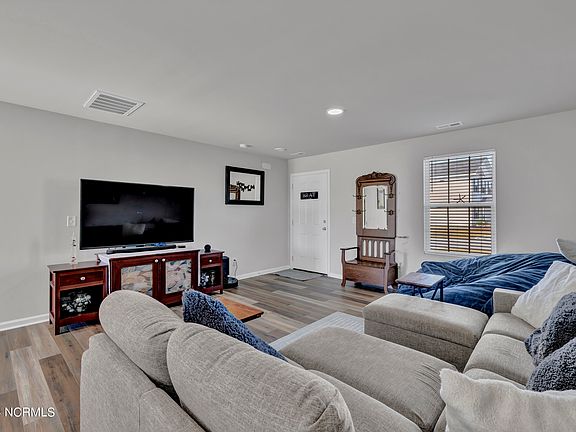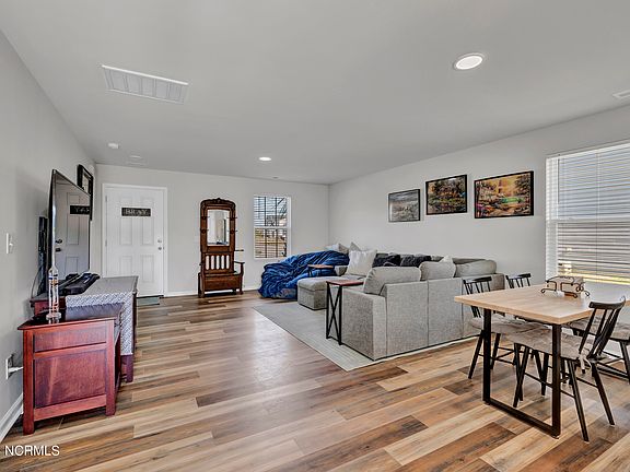 Your new home is conveniently located in The Home Place subdivision in Holly Ridge. The well-designed floorplan features sunny rooms and an open-concept layout for the main living areas with upgraded Recessed Lighting. A covered front entry welcomes you into this 3 Bedroom, 2.5 Bathroom home. Upon entering the LVP an open floorplan flows from the living room to the Dining area, to the Kitchen, and Back door. The kitchen features a service island with seating, walk-in Pantry, Frigidaire Profile Refrigerator, Glass top Stove/Oven with Hood, and a new Dishwasher. The Half bath is conveniently located on the first floor just to the side of the Kitchen and Access to the one car garage. There is a whole house reverse osmosis water filtration system. The second-floor spacious owner's suite is complimented with a private bathroom featuring a double vanity, linen closet, tub/shower, and large walk-in closet. The second and third bedrooms are also located on the second floor, both feature double closets and share the full bathroom located in the hallway. The laundry closet opens into the open landing area and is easily accessed by all bedrooms on the second floor across from the hall bath. There is a set of pull-down attic stairs leading to a small area for storage and the air handler. The LVP Flooring from downstairs is also in the master bedroom and closet. The large, sodded backyard with a 12'x 28' patio for entertaining, and an 8 x10 Shed. The Driveway has been extended for more parking by an additional 8'x 29' and extra cement pad for storage. Easy access to Surf City/Topsail Island beaches, great restaurants, coffee shops and breweries, Camp Lejeune, and Wilmington. This home will not last long. Call Today for Private Showing!!