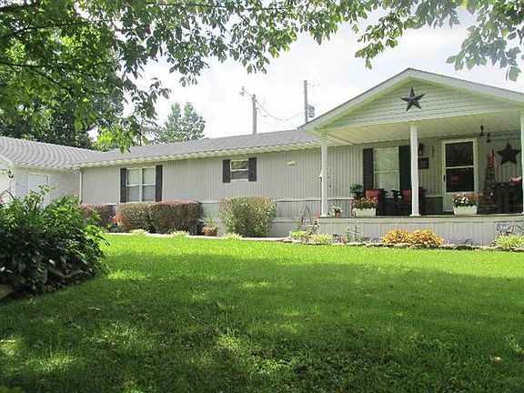 Spotless and absolutely gorgeous home! Three bedrooms, 2 baths, vaulted ceilings, white cabinets, central heat/air - gas propane heater built in wall for back up heat. 1280 sqft 16x80 doublewide. Underpinned - front porch, concrete sidewalls and driveway. 24x30 detached garage with 210 electric, finished ceilings(2 garage doors with remotes) and side door. Well landscaped, mature trees. Over an acre of land - backs up to wooded land. Private back yard.