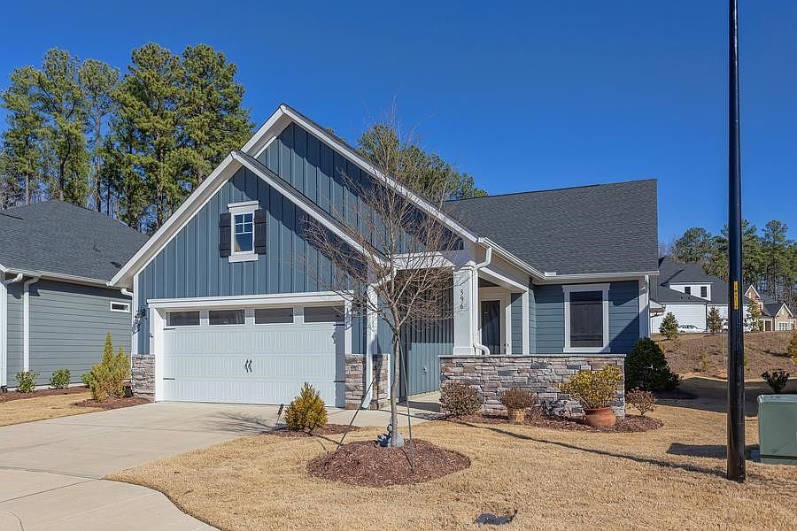Lovely ranch style home in Briar Chapel's Active Over 55 Encore Neighborhood! The Harmony floorpan features open concept living with 10 ft. ceiling height. Kitchen with abundant cabinets space, separate pantry and large center island. There are stainless steal appliances with a gas range. The spacious private owners retreat features a large bath with an oversized walk in shower with ceramic tile walls, raised height double vanity, a linen closet and walk in closet. You have a covered back patio with ceiling fan to enjoy outdoor living. Encore homeowners also have access to all amenities in Briar Chapel.