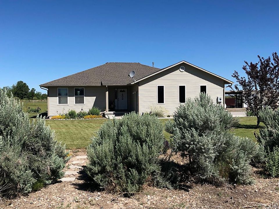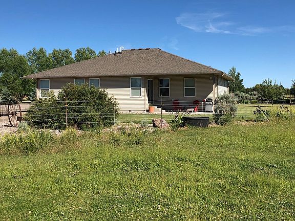 Well maintained newer 3 bedroom 2 bath home with 4.974 acres and horse facilities. Quiet secluded location with a nice covered patio to relax on. This property has water rights and K-line irrigation. The property is set up with a storage shop, lean to, and a loafing shed as well as corrals. The propane tank is leased.