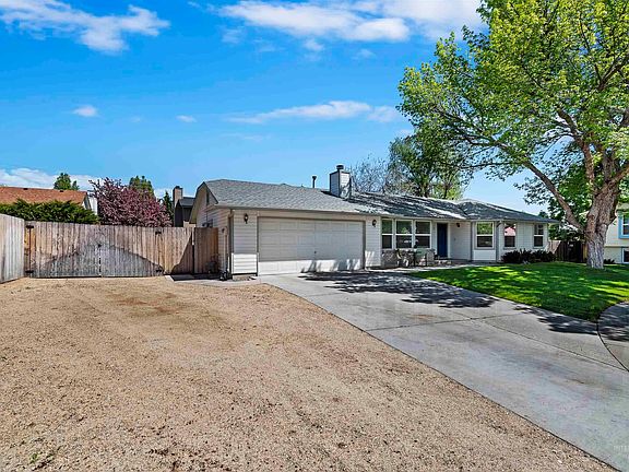 This charming single level home, with 3 bedrooms, 2 bathrooms, and attached 2 car garage, is move in ready. The open floor plan is airy, with large windows. The home features a newer stainless steel dishwasher, range, and newer windows. The master bedroom has its own private bathroom and walk in closet. The other 2 bedrooms have multiple large windows that add charm and beautiful light. The backyard is fully fenced (North and East side replaced in 2021) and has a covered patio. There is also a large RV parking space on the side. This home is located in a quiet neighborhood close to great schools, parks, and shopping. The home is also a short bike ride to downtown Eagle and all that it has to offer.