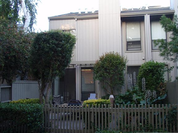 Fantastic, Executive Large 3BR-2.5 Ba two story 1600sq. ft. townhouse. Light and airy with cathedral ceiling and contemporary styling and an excellent floor plan and ample closet space and pantry/cabinets in kitchen and bathrooms. Also Fireplace. Larger than usual fenced rear patio with gardener service included. Townhouse is in a small and friendly 32 unit very quiet complex with Swimming pool and Jacuzzi. Excellent well maintained landscaping. The HOA is well run. Owner was the first president of the HOA years ago. Owner kept unit as an investment after moving to Cupertino and has had a friendly non-adversarial relationship with all previous and current renters. Conveniently located near Hwys. 101, 237 and 85 and Central Expressway. Close to Caltrain and Light Rail stations and downtown Mountain View's restaurants and ambience. Location is within easy commute of many large and small companies, with a Google research facility right across the street. Has dishwasher, oven/range, refrigerator, washer and dryer (inside). All were replaced within the last 3 years, plus new water heater and garbage disposal One car attached garage with lots of extra storage racks. Also a reserved parking space for a second car in driveway right outside the garage with plenty of street parking as well. Tenant pays for utilities. Owner pays Home Owner Assoc. dues. Owner prefers longer lease with better rent terms offered. The longer the lease, the lower the rent.