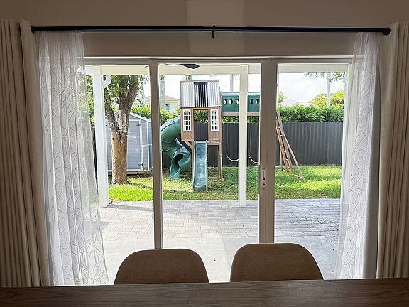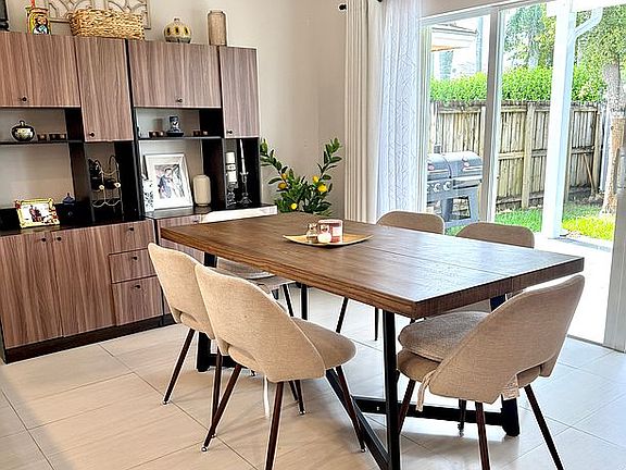 Step outside to your recently added covered terrace, spanning the full width of the home and accessible through two sets of sliding glass doors. Enjoy peaceful privacy with no neighbors behind you and a serene view of swaying palm trees and lush vegetation.