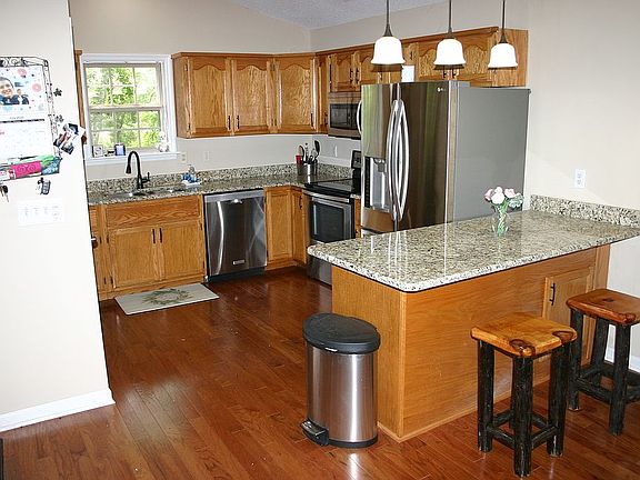 Riverfront living on a beautiful level acre lot! 3 bedroom, 4 bath 2 story home with huge deck overlooking the river, 2 master bedrooms, 2 fireplaces, stainless steel appliances, granite countertops, hardwood floors in the open kitchen/dining/living area, metal roof, dock on the river, fire pit, 4 car garage with workshop and extra storage room. First floor with kitchenette and full bathroom can be used as in-laws quarters or big man cave/game room. Square footage obtained from county records.