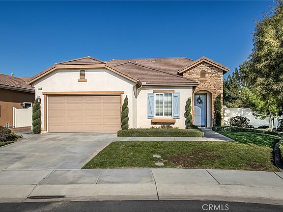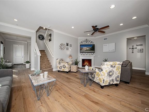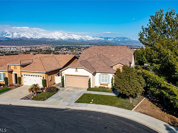 This Immaculate home is in the Gated 55+ Senior Community of Four Seasons Beaumont. Ideal location at the end of cul-de-sac with only one side neighbor and next to the nature walking trails. Incredible views of the San Gorgonio mountains with a private yard and plenty of room for a pool on the side if you so desired. The interior of this home is highly upgraded and features real hardwood floors throughout, tile floors in bathrooms and laundry, large baseboards and crown molding to highlight the beautiful paint tones. This open Floor Plan offers Two Bedrooms and a Den/Office downstairs with a fireplace in the living room. This homes unique floorplan features an oversized great room/loft upstairs for all your entertaining needs along with a pool table and bar. The Kitchen features, granite countertops, stainless steel appliances and a large kitchen island that offers incredible views while preparing meals. The Master Bedroom is oversized and features large bay windows to take in the beautiful scenery, large bathroom with a bathtub and shower in a stone finish. Indoor laundry room with sink and cabinets. The garage has been extended an extra 2 feet to accommodate a larger vehicle, floors have an epoxy finish along with a tankless water heater. An additional bonus is the Mello-Roos has been paid off on this property along with all the upgrades making this an incredible value and a place to call home. Seller will consider selling all furnishing, please inquire for more information. Four Seasons Community Includes a Lodge with a Pool Complex, Ballroom, Bistro, Theatre Room, Billiards, Salon, Bocce Ball Courts, Tennis Courts, Fitness Center, Walking Trails, an Indoor Pool Complex and Dog Park. Must see this property.