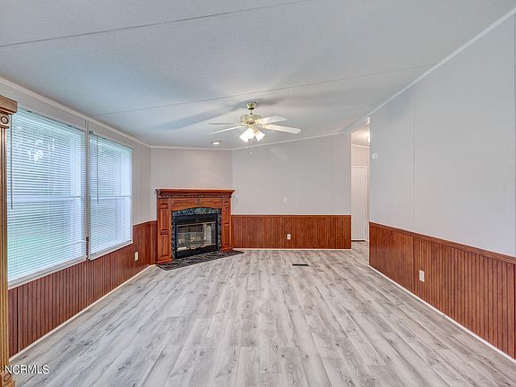 Country Living at it's best with this large 2000 plus SF home refreshed including new paint and laminate flooring located on 1 acre with a metal carport. It is a lovely 3 bedroom 2 bath home with split floor plan that allows you to have your own privacy. Features open concept living ideal for family gatherings with formal living room, open to dining area, kitchen and family room with fireplace. Kitchen has ample cabinet/counter space featuring cooktop island and desk area. Primary suite has walk in closet dual vanities, with tub and walk in shower. In addition there is an 18 x 13 Den with privacy and another room that could be used an office, work out room etc. Also has a mud room and laundry room. Property is on septic and has it's own well but does have a meter set for county water but not connected. This home is located convenient to Hwy 421 for an easy commute to Wilmington. Note: floor plan shows 4 bedrooms, but the county septic has it as a 3 bedroom