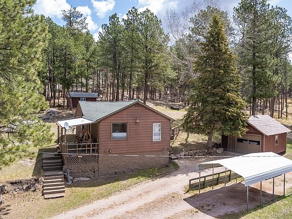Black Hills Treasure! Your very own LITTLE CABIN IN THE WOODS! On a wonderful half acre treed lot bordered by city lands. Country living with in-town convenience! Cabin is comfy and cute as can be. Kitchen/living/dining room is an open living space can be re-arranged however it fits for you. These owners did lots of remodeling including making the large bedroom space that walks out to the relaxing covered porch and turning the other little bedroom into a walk-in closet. The shed in the back has power and heat so could be a great she-shed/man-cave/bunk house. Detached garage, too. This lot is like a park and there are nice outdoor living spaces to enjoy. Such a great package! In the Custer city limits with city services yet feels like being in the country. Custer is a great city with it’s k-12 school, new hospital, county seat, active arts council and chamber of commerce, and very near all the attractions and parks that the Beautiful Black Hills have to offer. SD does not have state income tax. Land of the free! Home of the Brave! :)