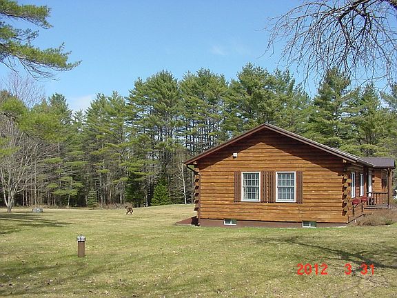 Pleasant and well maintained Log Home with over 4 acres of level and wooded land with a good size of cleared area around the home. Blueberry bushes, awning with screen panels for porch, wood stove in the mudroom or glassed in breezeway, metal roof and great curb appeal! Come see this one! Call Lynne Tardiff - Tardiff Realty 802-233-2106.