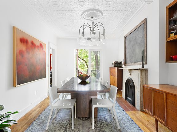 TOWNHOUSE TREASURE Nestled on a tree-lined street in a coveted corner of Boerum Hill is classic townhouse treasure -- a two-family home with ultimate convenience to every area cultural, dining, shopping, and entertainment destination. Steps from several major transportation hubs, you'll greet your neighbors as you make your way up its classic stoop. The blue front door beckons you into your private foyer followed by an antique wooden door that welcomes you home. Beautiful wood floors provide the foundation throughout the expansive yet marvelously manageable home -- with an impressive balance between original detail and contemporary elegance. Here, you have original mantels, perfectly scaled rooms, a 4-zone heating and air conditioning split-system, spa-inspired bathrooms, a tree-house terrace, and a deep, oversized backyard. The parlor floor is the heart of the home and offers the comforts of easy living along with the accessibility for great entertaining. The living room enjoys oversized windows with tree-filled views; a decorative, antique-marbled fireplace; high pressed-tin ceilings; beautiful built-ins, and lofty, open access to the dining room. The 12-person dining room also features an equally stunning decorative fireplace and original pressed-tin ceilings. It is flooded by sunlight from the kitchen and the floor-to-ceiling glass doors that open out to the family balcony -- the only entry to point to this home's treasured backyard and garden. The kitchen located directly off the dining room is a smart, custom, modern space -- a perfect blend of stylish form and practical function. With customized cabinets, counter, and storage space, the sweetly-scaled, vibrant, windowed kitchen offers premium stainless appliances, and a prime view overlooking the private backyard below. Up from the parlor are two generously scaled bedrooms that are bright, cheerful, quiet rooms with decorative fireplaces. They are both served by a refreshed, windowed guest bath that overlooks the gorgeous garden and offers a jumbo washer and vented dryer. The top floor master suite is the perfect treehouse sanctuary to this well-planned home that allows for optimal rest and rejuvenation. Exposed, antique wood beamed ceilings and custom built-ins surround the expansive suite with treetop views, a functioning wood-burning fireplace and a fantastic floor-through with opposite exposures for that coveted - and incredibly rare - cross breeze. The custom, walk-through closet opens up to a mini-kitchenette and the ensuite master bath with beautiful floor-to-ceiling tiles and a custom dual sink vanity. Light floods the closet through the floor-to-ceiling glass door leading out to the private and expansive terrace only an arm's length to the inhabitants of the trees rising from the backyard. The backyard is an outdoor-lovers' paradise. A custom red-wood cedar deck, and fencing create the framework for this sunny and private, multi-tiered garden oasis, and is the ideal setting for play, work-from-home, school-from-home and work-out-from home. It's perfect for the grill master, the entertainer, and al fresco dining under the stars. This sunny paradise is like an extra jumbo living room -- giving you the coveted flexibility today's NY'er must have. Back inside, the garden level is currently presented as a private, floor-through, home within the home - a proper one-bedroom, one-bath apartment with a private entrance off the front garden -- with an open living room and kitchen featuring original wide plank wood floors and exposed beams throughout. The spacious bedroom features a decorative fireplace with two closets and is served by a windowed bath with its own washer and vented dryer. The basement cellar is smartly suited for bountiful extra storage, and could easily accommodate an extensive wine cellar. Its compact systems include a new boiler (2018).