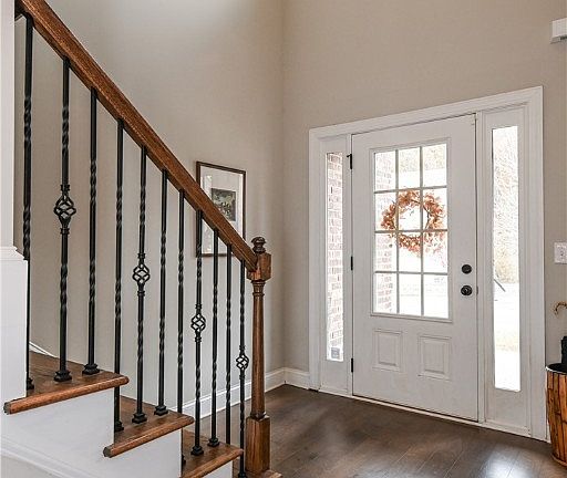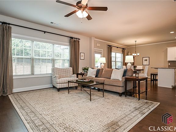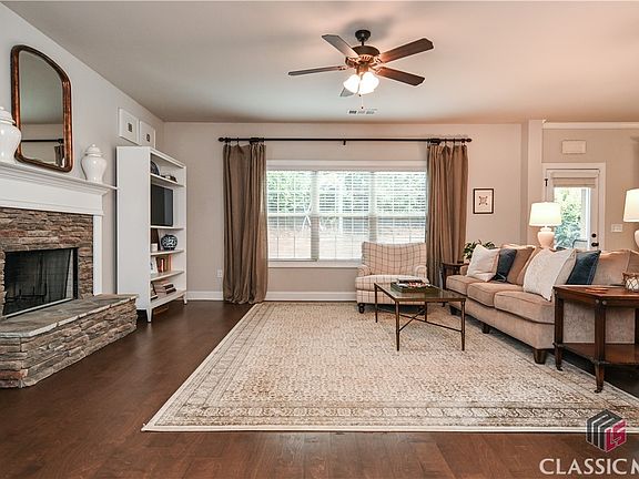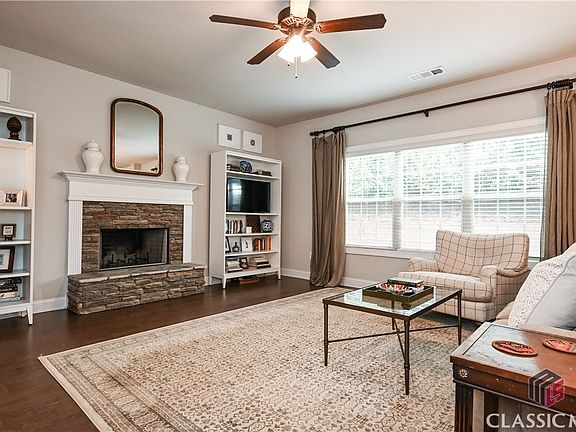 As you enter the bright two story foyer, you will see the wood staircase and matching floors that flow right into the great room. The living area has a fireplace and large triple window for tons of natural light. Behind that is completely open to the kitchen and dining space. The kitchen features white cabinets, an island, a tile backsplash, and granite countertops. The dishwasher is new, replaced just before listing. Around the corner is access to the garage as well as a pantry with double doors. Completing the main floor are the powder room and access to the covered back porch and fenced back yard. Upstairs, you'll find the master suite, laundry room, three more bedrooms, another full bathroom, and a linen closet. The master suite has a trey ceiling, crown molding, and an ensuite bath with double vanity, garden tub, tiled shower, and water closet. The three additional bedrooms each have vaulted ceilings and walk-in closets. This 3-sided brick home in the Towns Walk neighborhood also has great amenities - including lawn maintenance, swimming pool, clubhouse, and trash/recycling pickup.