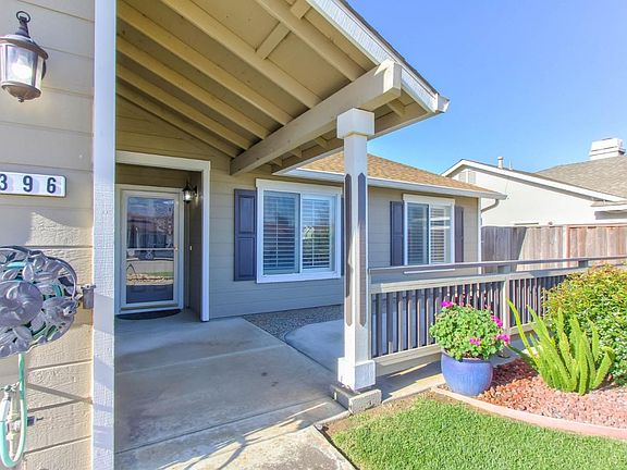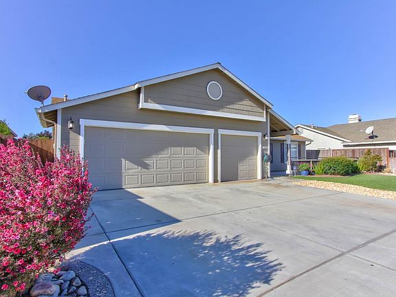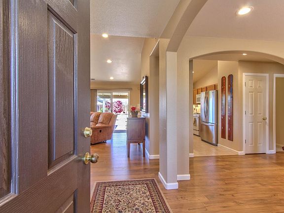 Gorgeous Pinnacles 3 bedroom, 2 full bathroom Soledad home! Open & spacious floor plan with beautiful large planked wood laminate flooring & high ceilings. Kitchen has tiled counter tops & breakfast bar, tiled floor, large pantry & added custom lighting. Separate dining room. Living room features fireplace with concrete tile, wood mantel & slate pad. Nice sized master with double closets. Master bathroom has double sinks & over sized shower over tub. Be prepared to be impressed with all the extra lighting (even most closets), big screen TV & components convey, shutters on some windows, water softner, attic fan & Central Air Conditioning too! Large park-like setting backyard with covered patio area & stamped colored concrete walkways. Pomegranate, Lemon & Fuji Apple Trees & grapes also. Large shed with shelves for storage. 3 car garage has painted floor, built in double closets & pull down ladder to attic storage. All on a HUGE 9,700+sf lot ! (SF/lot/age/school not verified by agent)