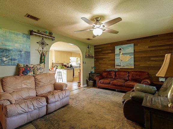 This beautiful, brick 4 bedroom 3 bath home is located just across the street from Banks Lake. LAKE VIEW!!! Enjoy the lovely views of the lake from the living room picture window. HUGE YARD!!! The home is situated on approximately one and a half acres and features a privacy fenced backyard, a 10x20 outbuilding, new septic drain field (2021), a new water heater in 2019, a new roof in 2015, an awesome orange tree, and a whole lot more! ALL appliances stay! BRICK, FRESH FRUIT, and a LAKE VIEW!!! Who could ask for more??!!
