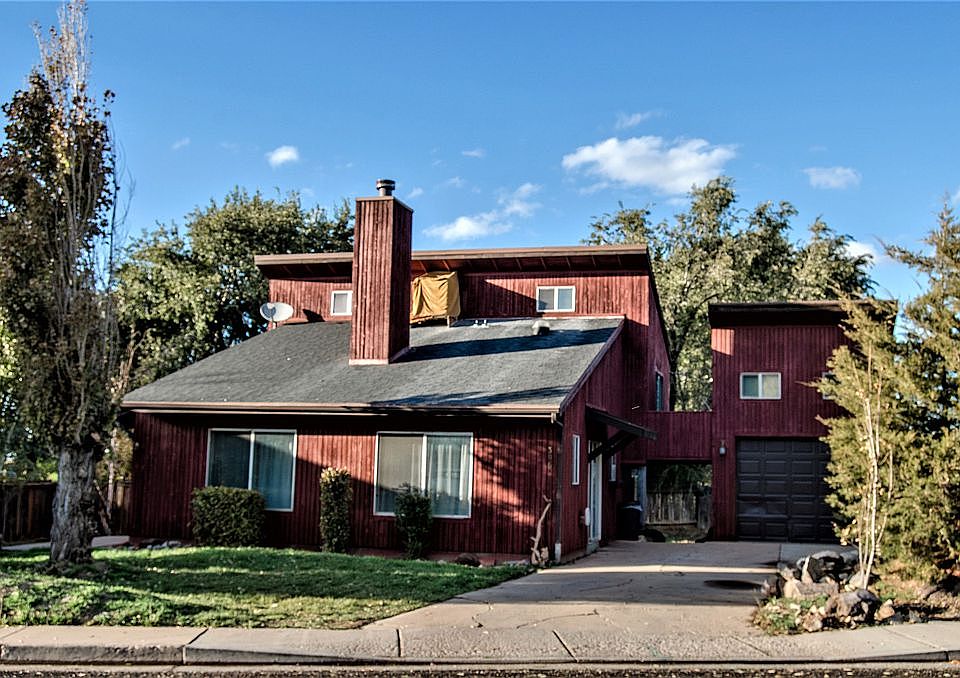 This home is an open contemporary style layout. The kitchen, family room & dining room are open with vaulted ceilings with large windows to maximize the light. Layout gives you 2 bedrooms & 1 Bath upstairs, 1 bedroom & 1 bath, an office, laundry on the main level. Includes 1 car garage with additional storage above. Large trees for privacy are great!