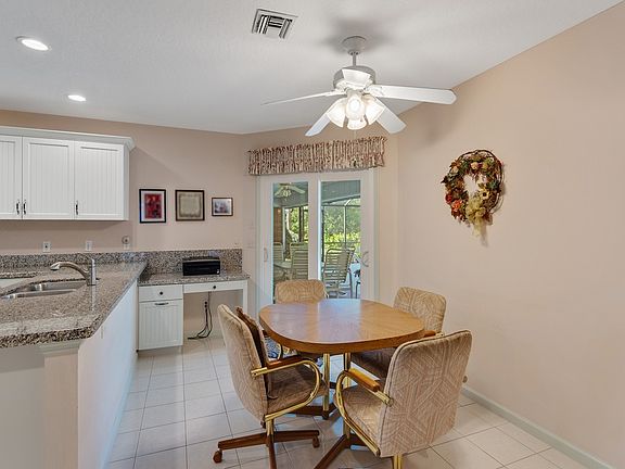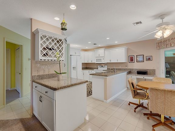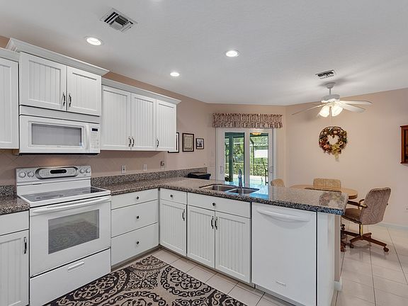 Set in a beautiful subdivision on .28 acres, this 3-bedroom, 2-bath pool home blends comfort and style. Inside, tile floors sweep through spacious rooms, with soft carpet underfoot in each bedroom—each offering a walk-in closet. The kitchen features granite counters and white appliances, opening to a large porch overlooking a heated, screened pool with outdoor shower. Enjoy a garden tub, 2020 A/C, 2019 water heater, impact windows, metal roof, irrigation, and a bright, inviting feel throughout. Rm sizes approx