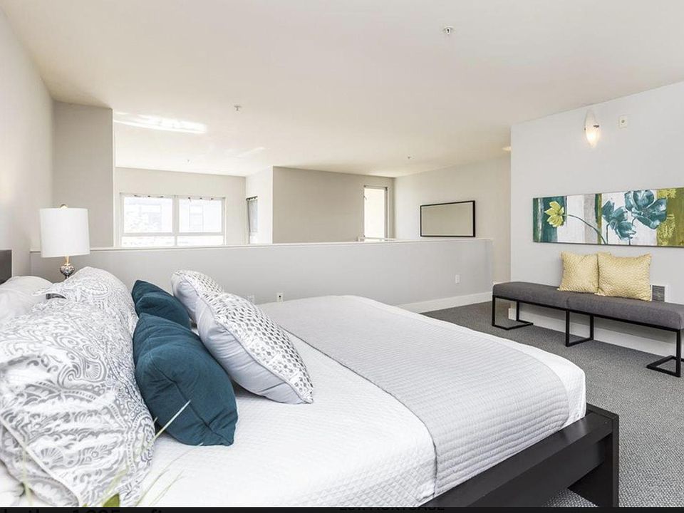Key Route Lofts. Designer loft in Emeryville, 1080 sq ft loft, 1bd/1.5 bath, accessible to shopping, dining, freeways, and SF, available immediately. Built in 2006. Full kitchen, dining and living areas. Features include bright open floor plan w/soaring ceiling, private balcony, spacious bathrooms, lovely bamboo flooring on main floor/berber carpeting on mezzanine, with gas burning fireplace in living room. Kitchen boasts solid wood cabinetry and energy efficient refrigerator, gas stove, microwave, dishwasher and washer/dryer. The unit is also CAT-5/RGB/MC wire ready. Includes one enclosed parking space. Video tour available upon request, Good credit, stable job history references will be requested. First + Deposit
