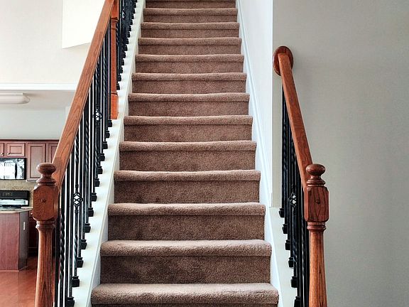• Kitchen Features: Cabinets Stain, Eat-in Kitchen, Pantry, View to Family Room, Kitchen Island, Solid Surface Counters