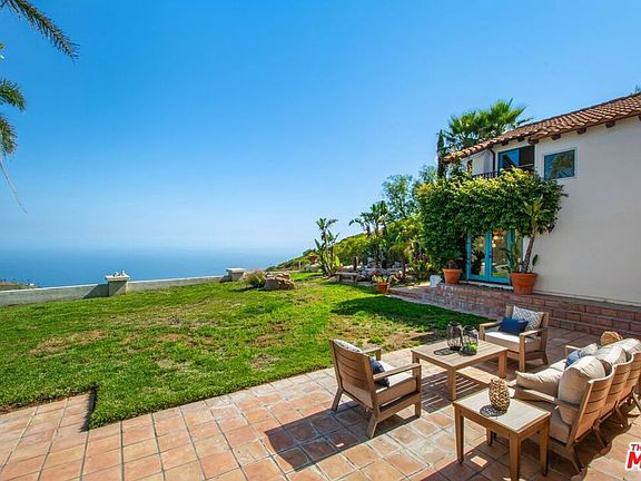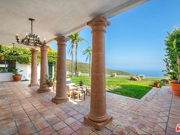 Charming Malibu Hills Tuscany Estate with Unparalleled 360 Views! Welcome to a truly enchanting sanctuary nestled in the heart of the Malibu Hills. An extraordinary Tuscany-inspired Villa set on approximately 12 acres of pristine, privately gated land. This one-of-a-kind property offers unobstructed 360-degree panoramic views of the Pacific Ocean and majestic surrounding mountains, creating a breathtaking backdrop from every angle. As you pass through the grand iron gates and wind down a tree-lined driveway, you are immediately transported into a world of serenity and luxury. The estate unfolds like a private resort, with multiple structures thoughtfully placed across the expansive grounds to maximize privacy, comfort, and the natural beauty of the landscape. The main residence, a stately two-story home, exudes timeless elegance with its classic Mediterranean architecture, warm stucco walls, and red-tiled roof. You'll be surprised to see the sprawling spaces inside. Just few steps away, a detached two-story guest house offers three spacious bedrooms and three full bathrooms perfect for hosting guests or extended family in complete comfort and style. At the heart of the estate lies a massive sparkling pool and spa, surrounded by vast sun-drenched decks and lush landscaping. The pool cabana is a showstopper in itself, featuring soaring ceilings, a cozy fireplace, a full bath, and a tranquil massage room, ideal for relaxing after a swim or entertaining under the stars. Equestrian enthusiasts will be delighted by the giant, all-flat, fenced horse arena, which can also be repurposed for events, sports, or creative outdoor uses. The property also includes horse stables, a chicken coop, and a large storage building, offering both functionality and charm. The grounds are a masterpiece of thoughtful design and natural beauty. Manicured grassy lawns roll gently across the property, dotted with fruit trees, soothing fountains, and a koi pond complete with a picturesque round wooden bridge. A romantic gazebo invites quiet moments of reflection, while massive solar panels and a private well ensure sustainable, off-grid living. Additional features include a three-car garage, caretaker's quarters, and multiple outdoor lounging and dining areas that take full advantage of the estate's awe-inspiring views. Whether you're watching the sun rise over the mountains or set into the ocean, every moment here feels magical. This Malibu Hills estate is more than just a home, it's a lifestyle. A rare blend of luxury, privacy, and natural splendor, it offers a once-in-a-lifetime opportunity to own a piece of paradise. Whether you're seeking a peaceful retreat, a family compound, or a venue for unforgettable gatherings, this property delivers it all with grace and grandeur.