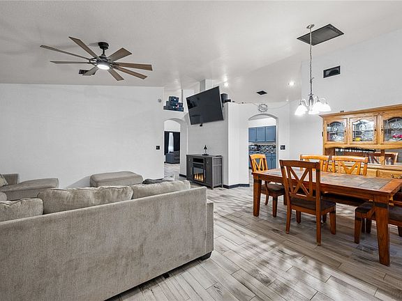• Breakfast Bar, Ceiling Fan(s), Dining Area, Garden Tub/Roman Tub, Primary Suite, Open Floorplan, Pantry, Tile Countertop, Tile Counters, Vaulted Ceiling(s), Walk-In Closet(s), Window Treatments