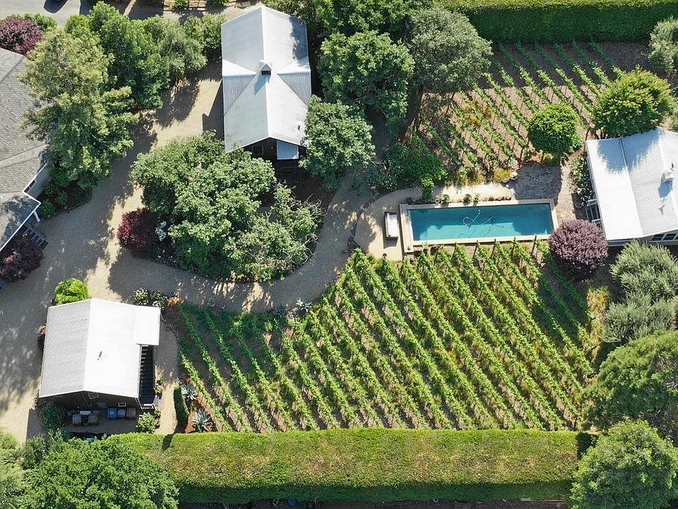 Napa Valley farmhouse vineyard estate compound located on coveted East side of Napa 5 minutes to downtown in private setting with stunning vineyard & mountain views. Featured in many home & garden tours & frequented by luminaries of food & wine industry, this special property on 1 acre offers total of 5 Bdrms 5 full & 2 half baths with total of 5698 sq ft. Main house with 3870 Sq ft & 2 spacious ensuites features all main living areas on 1st floor including the premiere ensuite. Great room style floorplan with elevated ceilings & 8 sets of French doors that open to outdoor entertaining area with pizza oven, bocce court, beautiful gardens, olive orchard & fruit trees for farm to table living. Gourmet kitchen with stainless appliances features expansive center island with counter seating & large scullery. Main ensuite offers 2 sets of French doors that open to private deck, spa-like bath, walk-in closet & retreat with pocket doors perfect as private seating area, den, office or exercise room. Guest house adjacent to pool is 518 sq ft with 1 bdrm 1 bath ensuite. Guest unit over 3 car garage is 880 sq ft with 1 bdrm, 1 bath & kitchenette. Another guest ensuite with 430 sq ft is located over 1 car garage. Rockstar Cabernet vineyard with grapes sold to Chris Dearden for Sleeping Giant.
