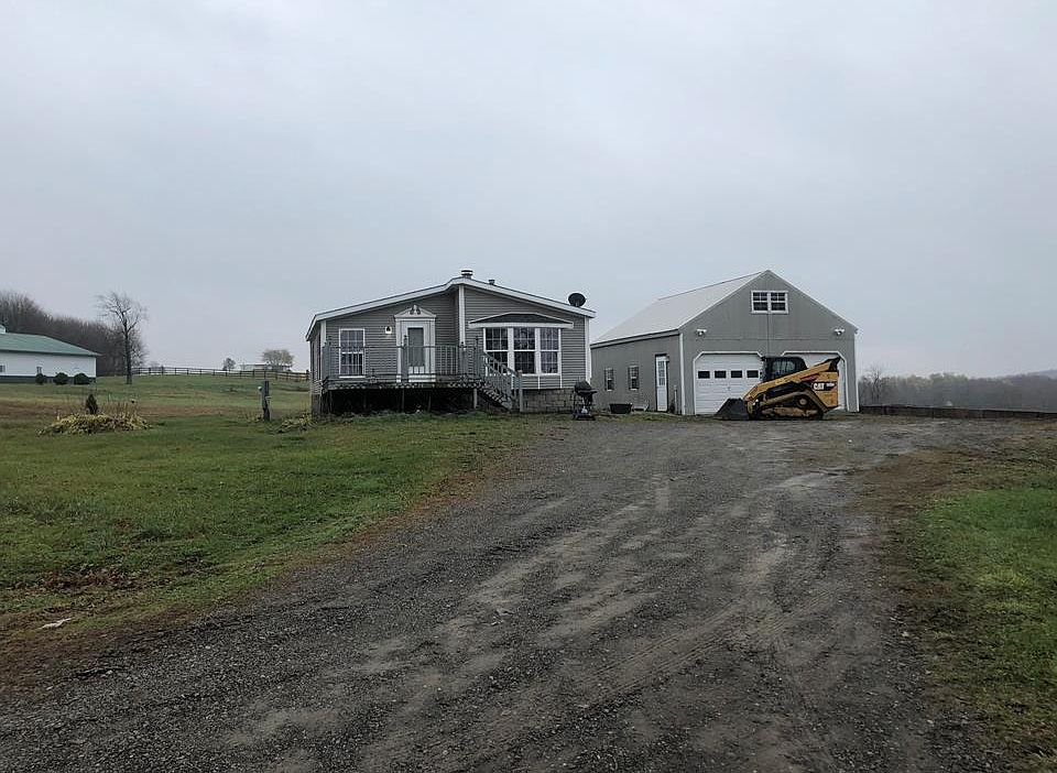 Manufactured DDW ranch home on spacious lot with detached two story 2 car 24' x 26' garage with loft storage. Quiet dead end road with little traffic. Country hilltop views only 4 miles from town & only 1/2 mile from Maple Hills Golf course. No remotes for garage doors as is. Horse sheds on property to be removed. 2021-08-18