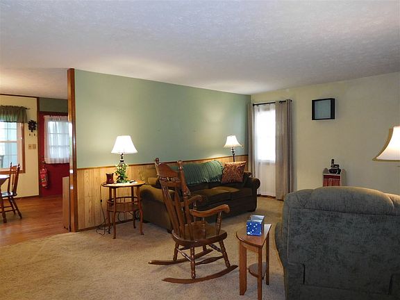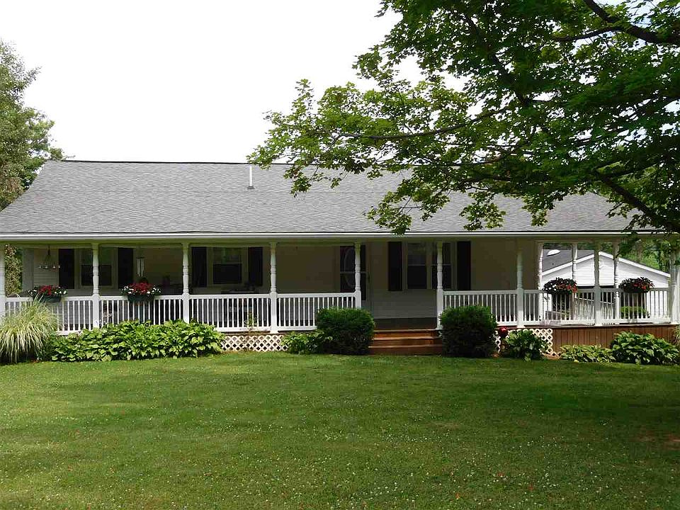Charming ranch over basement with gorgeous views from its broad wrap around porch. This well maintained and enhanced property can easily be home to an extended family, as the basement has its own kitchen/bath/bedroom and exterior access. The home's large, cheerful kitchen provides ample room for dining, or expand out onto the adjacent enclosed sunroom. The lower level family room has a stone hearth and woodstove. The landscaped yard area includes mature pear & apple trees, grapes & more. There is also a 2- car detached garage, nice pole barn, & a third outbuilding with a stable. The perimeter is mostly defined by older animal fencing.