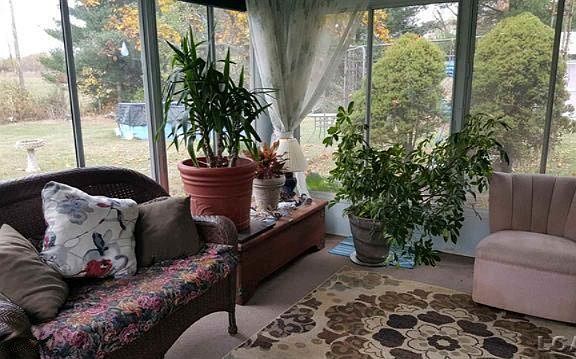 A touch of country living. Nice 3 bedroom, 2 bath home. There is a 3 season room overlooking trees and fields. Cozy wood burning fireplace. New flooring through living room, dining room & kitchen. 1456 square feet of living space. 2 car attached garage with new garage door opener. 950 square feet storage space in basement. 13x13 outbuilding and beautiful hosta garden.