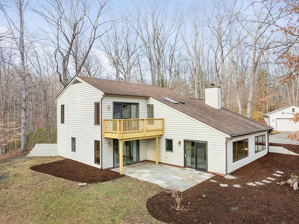 IMMEDIATE OCCUPANCY! Seize this rare chance to own a beautifully maintained 4BR/3BA contemporary home in a tranquil 13-home community on 3.81 wooded acres. The open floor plan features vaulted living room, stylish kitchen with Corian counters & new cabinets, plus a spacious terrace-level bedroom with remodeled bath (2021) & laundry. The Owners Suite boasts a private deck for morning coffee, walk-in closet, & updated bath with walk-in tile shower (2021). The 2nd & 3rd bedrooms share a remodeled bathroom, while a detached 2-car garage has space for projects. Ideally located near Route 29, NGIC, & North Fork & 15 minutes from Pantops!