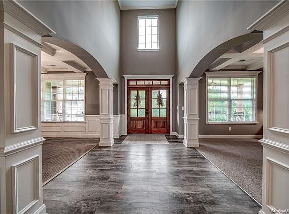 Gorgeous two-story home in the popular lake-front community of Eastwind Cove! Enter the foyer through solid mahogany french doors. Love the large open foyer, high ceilings and natural light in this immaculate home! Details galore, coffered ceilings and extra trim throughout. Dining room and home office space or an extra seating room. Next you will see the wonderful open space that is your family room/breakfast/kitchen - the perfect spot to enjoy with friends and family alike. The cook's kitchen has a large island and SS gas cooktop. The lighting fixtures are outstanding! Granite tops, tile backsplash & SS appliances. Also on the main floor is a spacious bedroom/office with a full hallway bath. Upstairs is the primary owner's bedroom, 3 guest rooms and a dream bonus/media room. The exterior is beautifully landscaped, fenced and irrigated w/a storage shed. Expanded outdoor covered patio w/ fireplace. Perfect layout for a future in ground pool. Stop and see this beautiful home today!