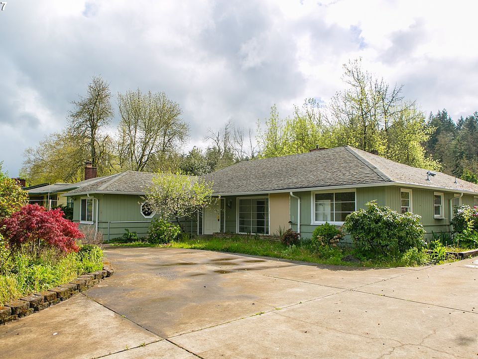 Almost one half acre of land in south Eugene. Rare in ground pool and pool house. All space is on one level, mid century style with large windows and center living room. Fireplace is dual sided, one facing the courtyard and pool