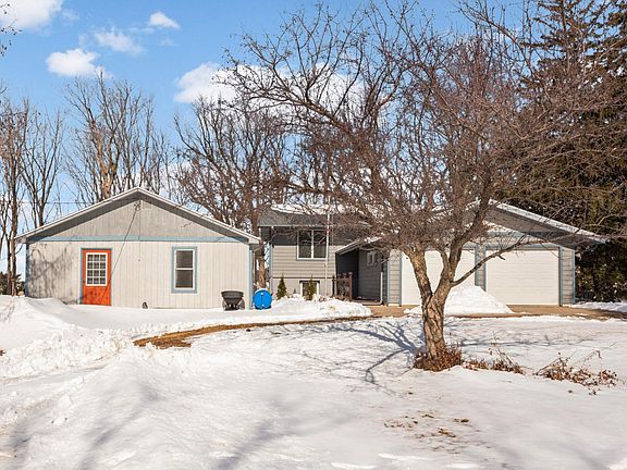 This stunning home in seamlessly blends modern luxury with serene country living, Nestled on 2 acres with a circular driveway, this property is a true retreat. The main level offers a spacious light filled open floor plan. The chef's kitchen features warm-toned cabinetry, luxury plank laminate flooring, a large center island with breakfast bar seating, stainless-steel appliances, including an oven, stovetop, microwave, dishwasher, and fridge, all updated within the last two years. The kitchen/dining room boasts a large area for entertaining and access to the 10x12 deck, perfect for indoor/outdoor entertaining. The inviting main floor living room features new windows to let in the natural light. The main-level laundry room is conveniently located in the kitchen. The heated "Man Cave" shed features epoxy floors, storage and more. The remodeled lower level features a newly remodeled spacious family room, a 3/4 bath and two additional bedrooms. The outdoor spaces are exceptional, featuring a new roof, a concrete patio, new 10x12 deck, 88x34 outbuilding, 24x24 heated workshop, and a 10x12 garden shed. This property offers an unparalleled blend of comfort, and natural beauty.