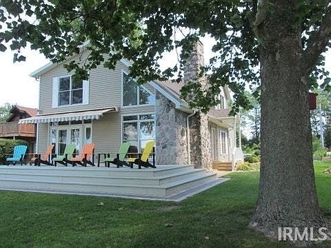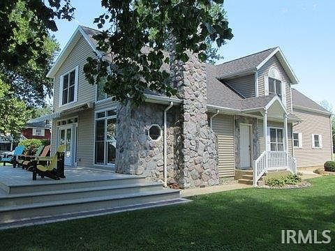 Call this one home year round or make it your lake getaway! Located on Bremen's very own Lake of the Woods, an all-sport lake. This home is move-in ready with four bedrooms, three baths, natural gas firepit, power awning over deck, and heated garage. This home has a spacious kitchen with dining area overlooking lake, extra large laundry room, cozy stone fireplace, large upstairs landing for more living space and a main level home office/spare room. Some of the latest improvements include new roof, new deck, and new siding...this is a very well maintained home! Gorgeous views of the lake from living room and from master suite. All appliances, pier, furniture and decor are negotiable. Double lot across the street is included in the sale of this home. So many possibilities and priced to sell!