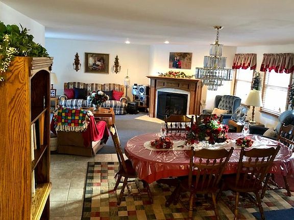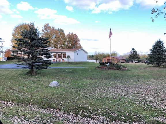 WOW!! Look at this 3 bedrooom Ranch home plus a step down 26x34 family room/bath addition All ON 3.29 ACRES. Check out the photo tour as this home is in MOVE IN condition with many updates. A few included remodeled family room in 2003 and new 2 full bath with laundry closet, new well pump. Since most are newer windows, patio doors, entrance doors, original Kitchen cabinets were installed in the basement rec/craft room, New kitchen cabinets added. In 2010 the original shingles were removed, ice and water shield added, new tar paper and 35 year dimensional shingles added. Besides the covered front porch with beautiful roses in front there is a covered deck off of the dining area overlooking the rear yard and a cement patio off the rear of the family room. The home heats with LP gas forced air, LP gas fireplace insert in family room and new electric heated(if needed) in the newer bath. In addition to the 30x50 pole building (which has 220 electric and a generator, and H2O beside this building) there is a 16x20 garage with electric door opener, H20 next to a cement slab that had a mobile home on in past years, the owner added a new septic field to this 2nd septic around 2004 and has a line to run water from the same well as the home. The main septic is original but the owners added new septic field approx 8 years ago. The asphalt driveway a plus and also see the 2nd drive to the garage.