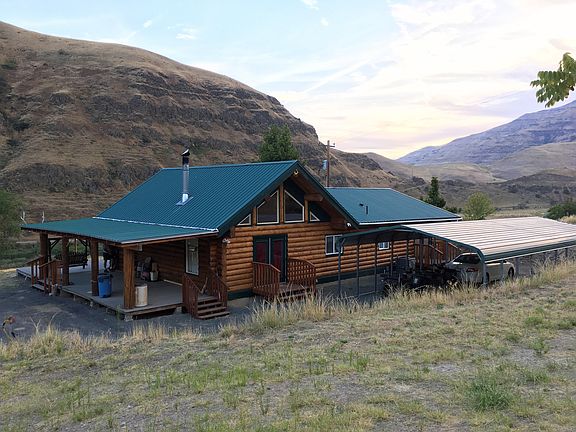 Beautiful 3 bedroom, 2 bath log home overlooking Grand Ronde River, 25 miles south of Asotin, Washington. 1674sqft on 6.4 acres. Striking, open design, with log-beam vaulted ceiling great room. Central heating and air with wood stove alternative for cozy winter nights. Relax on the open deck and enjoy quiet outdoors, expansive view. Just 2 miles from Heller Bar boat lunch with access to the Snake River. Public access to Grande Ronde literally at the bottom of the driveway. Property also features a 24x36 carport, a 10x20 storage building, a 10x16 greenhouse and a 12x14 woodshed. Call (509) 243-1190.