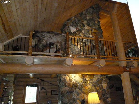 This exceptional handcrafted log home on 7.94 acres boasts ultimate privacy with panoramic views, 2 large ponds, year round creek, multiple spacious shop/garage (30''x48'' with 28''x42'' lean-2). - yet only a short distance to historic Sumpter OR. Home offers 3494 sq ft of living area, featuring a grand custom-built rock fireplace master suite with walk-in closet, jetted tub.
