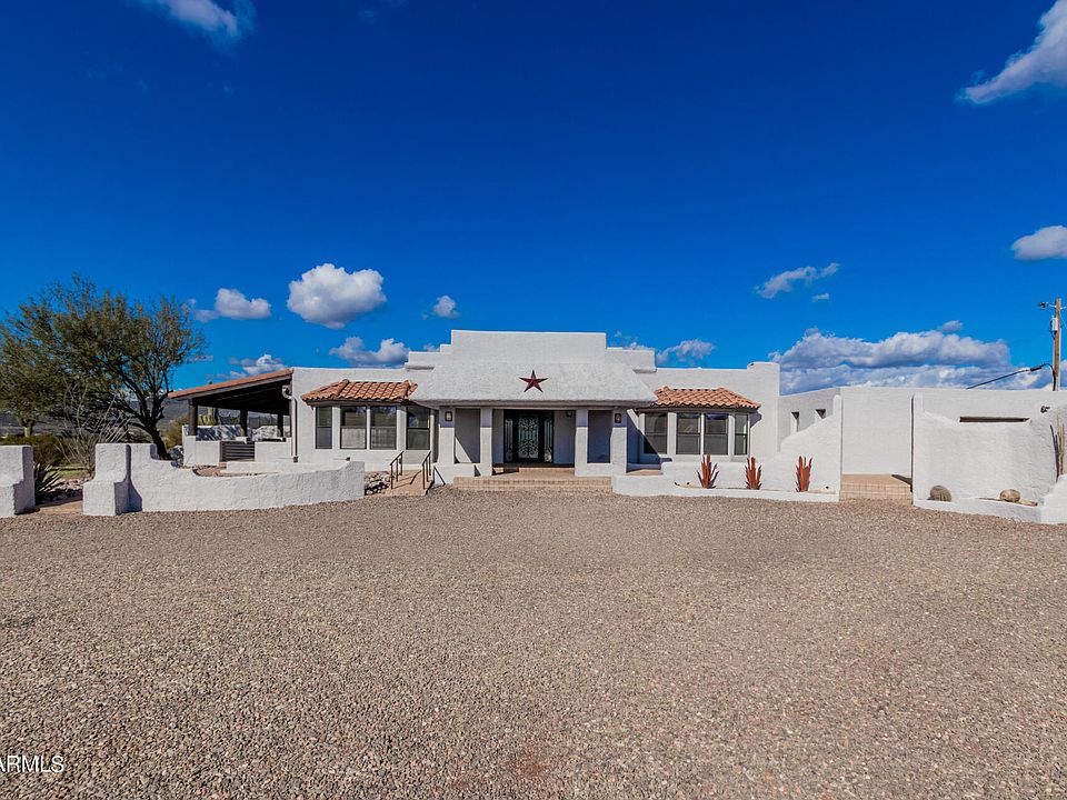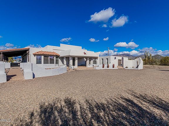 A rare find. 5.3 acre property in the midst of the black mountains. This gorgeous Santa Fe, Spanish home provides spectacular mountain views out of every Window! Plenty of Potential for this one!. It has it'w own private Well and 2 year old Septic! The HVAC's are 2 and 5 years old! The home also has a Water Filtration and reverse Osmosis. This open flow house provides a spacious feel while delivering plenty of privacy. With over 5 USEABLE acres your options are limitless. You can build a barn, stable, RV Garage, batting cage or your own arena. Your options are limitless Easy access to the Cave Creek trail system which runs along Spur Cross Rd and takes you to the Spur Cross Conservation area, State Land and the National Forest. NO HOA!