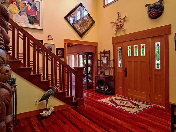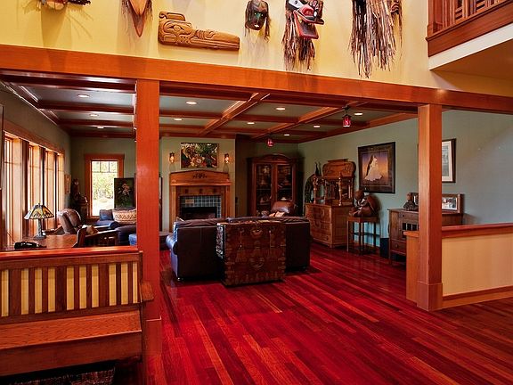 Classic Craftsman built in 2000 serves up period charisma with modern sensibilities. Lives like a comfy NW lodge w/wide porch, rich cherry floors, 2 tile fireplaces, box-beam ceilings, stained glass & doug fir trim. Two-story skylit entry sets gracious tone. Spacious LR/DR/Kitchen/Den for largest gatherings. Huge master w/FP exceeds expectations. 4-car garage & shop. 3 BR, 3 BA, Office, 4423 SF. Built w/exceptional detail. Beautiful .65 AC lot w/nice views in desirable Seaview 3.