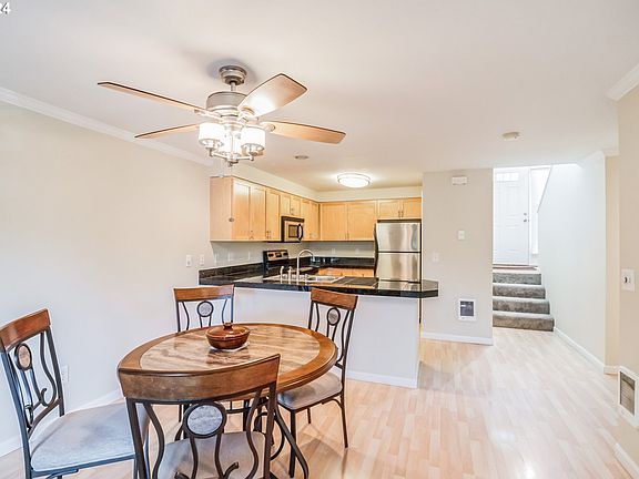 Comfortable living in Lake Oswego! This delightful home boasts freshly installed carpet, spacious bedrooms, and primary suite with an attached bath, closet, and lovely views of the greenery. Enjoy the modern touches of upgraded hardware, neutral warm colors, and abundant natural light throughout. The quiet setting provides a peaceful atmosphere, while the connection to nearby trails and covered BBQ area offers excellent outdoor living options. Relax on the large partially covered deck or by the cozy wood-burning fireplace. Additional features include a powder bath on the main level, a laundry closet with storage on the upper floor, and easy access to parks, shopping, and I-5. Excellent opportunity to own a beautiful condo in a prime location!