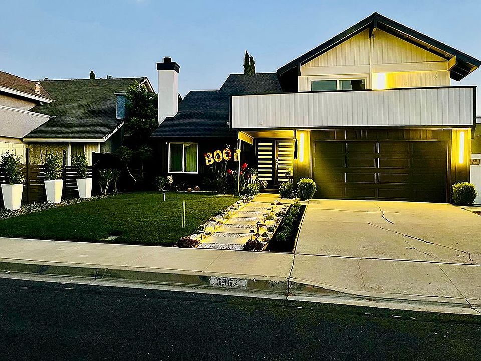 Owners spent almost 200k updating this house. Walls have been removed downstairs to create a very open floor plan so this looks very different to the other like models in this neighborhood. Downstairs there is a huge family room with walls of windows that is open to the kitchen and a huge living room with fireplace and very high ceilings. Updates include fully-remodeled kitchen with Bosch steamer, coffee machine, stovetop, microwave and dishwasher. High lacquer soft close cabinets. 9 foot Quartz island with waterfall edge. Recessed lighting in kitchen and family room. Wine refrigerator. All floors have been updated to wood vinyl flooring. New roof 2023. New solar panels. Custom cabinets and flooring in garage. 2 Tesla battery walls. Fully-landscaped front yard, custom aluminum fencing, new modern lighting and planters. Full private backyard, planted 75 ligustrums. White vinyl fencing. Upstairs there’s a loft and the 4 bedrooms. Master has vaulted ceiling, walk in closet, bathroom has a large shower. Walk out to a huge balcony with a nice view of the hills. Completely private backyard with gazebo and separate hot tub. Millard dual pane windows and sliders. Great area close to stores and 118 fwy. Almost at the end of a Cul-de-sac Street. No agent showing until open house on 3/2 & 3/3 1-3pm. Buyers call the agent directly at 310-962-4684 for more information. Please ignore the old pictures Zillow won’t let me remove them for some reason.