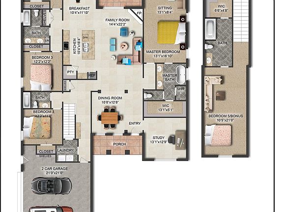 - Features: 10’ + Ceiling, Tray Ceiling(s), Wood Floor, Walk-In Closet(s)
