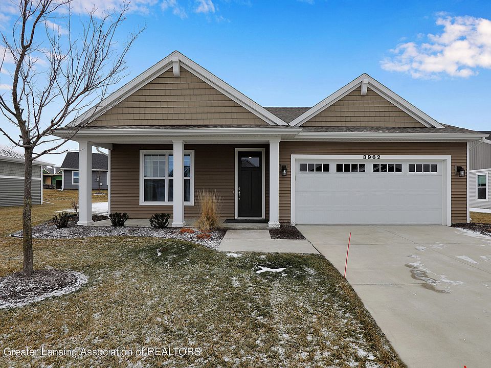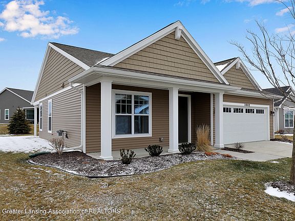 Welcome to this move-in ready detached single family condo in East Lansing! Very lightly lived in, this 2 bedroom, 2 bathroom home has an open concept floor plan with 9 ft ceilings throughout. Also has luxury vinyl tile flooring in the kitchen, living and dining rooms. One floor living at it's finest! First floor laundry, attached 2 car garage, beautiful owner's suite and this home is soclose to 6 unique golf courses and Eastwood Towne Center! MSU is only 5 miles away too. Association dues include snow removal, lawn care, water and maintenance of sprinkler system.