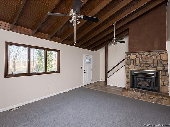 Spring is in the air, and this great retreat is back on the market through no fault of its own (buyer's loan fell through). Enjoy the buds, blooms and awakening of wildlife this spring and abundant shade this summer. Come fall, the spectacular colors on and surrounding your property and on the smooth, scenic drive to it from I-65 will make you fall in love all over again with your choice. This 3 bed, two bath contemporary home with a cabin feel has serene surroundings including streams and mature trees that can be enjoyed from your front patio, back deck or a walk around the nearly 2 acre property. Inside, find natural wood trim, soaring wood ceiling and wood-burning fireplace with insert and stone hearth. Updates include luxury vinyl plank flooring, new paint, new bathroom vanities, sinks and commodes, tile backsplash and newer appliances which stay. Home features an open floor plan and first floor master and laundry. Plenty of storage in oversized one-car garage, walk-in closets and built-in shelving. Square footage and room sizes approximate; buyer should verify if critical.