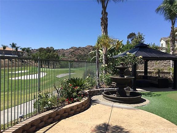 Absolutely gorgeous fully furnished home in the prestigious San Lorenzo community that overlooks the 15th hole of Black Gold golf course and has beautiful city light views! No detail spared! Meticulously maintained wood floors throughout living areas & beautiful carpet in bedrooms. Entertainers kitchen with wrap around island, GE monogram refrigerator, granite counters with custom travertine back splash and GE Profile appliances. Kitchen comfortably opens up to the spacious family/living area with built in entertainment center and customized fireplace for those cooler days. All of this overlooks your oversized yard, one of largest backyards in the community with multiple gazebo, fountain and incredible views of golf course. The master suite is spacious with custom window coverings and luxurious master bath that boasts separate shower and tub with a super sized walk in closet. Additional features to this lovely home features custom light fixtures and window coverings, lots of storage, separate laundry room and a 2-car garage with useful overhead storage. San Lorenzo has a resort quality pool with spa, BBQ area and clubhouse with kitchen. This is a beautiful community to live in and all walking distance to the sought after Yorba Linda High School.