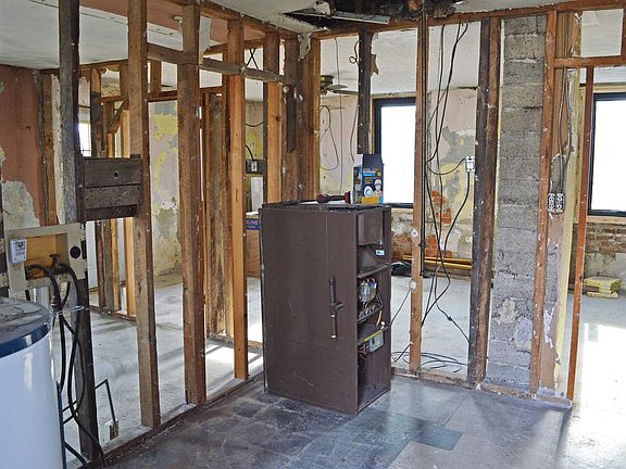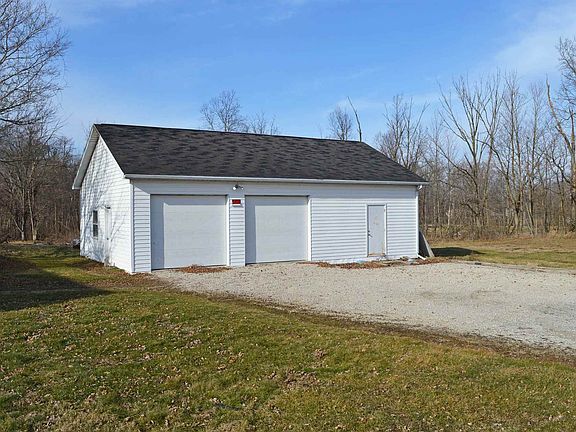Great opportunity! 3.3 rural acres, mostly wooded. 1885 brick schoolhouse with room addition. Previously 2 bed, large attic space could be additional bedrooms. ** Interior is completely gutted to studs for remodel.** Large garage is 2 car plus heated workshop/office area. Generator remains. Septic behind house, extends out behind garage. Seasonal creek on property in woods. Brand new windows 2020. Selling as is. Must sign mold/biological contaminants hold harmless agreement before showings. *ROOM SIZES ARE APPROXIMATE,* no interior finished walls. House is 100 amp, garage is 200 amp.